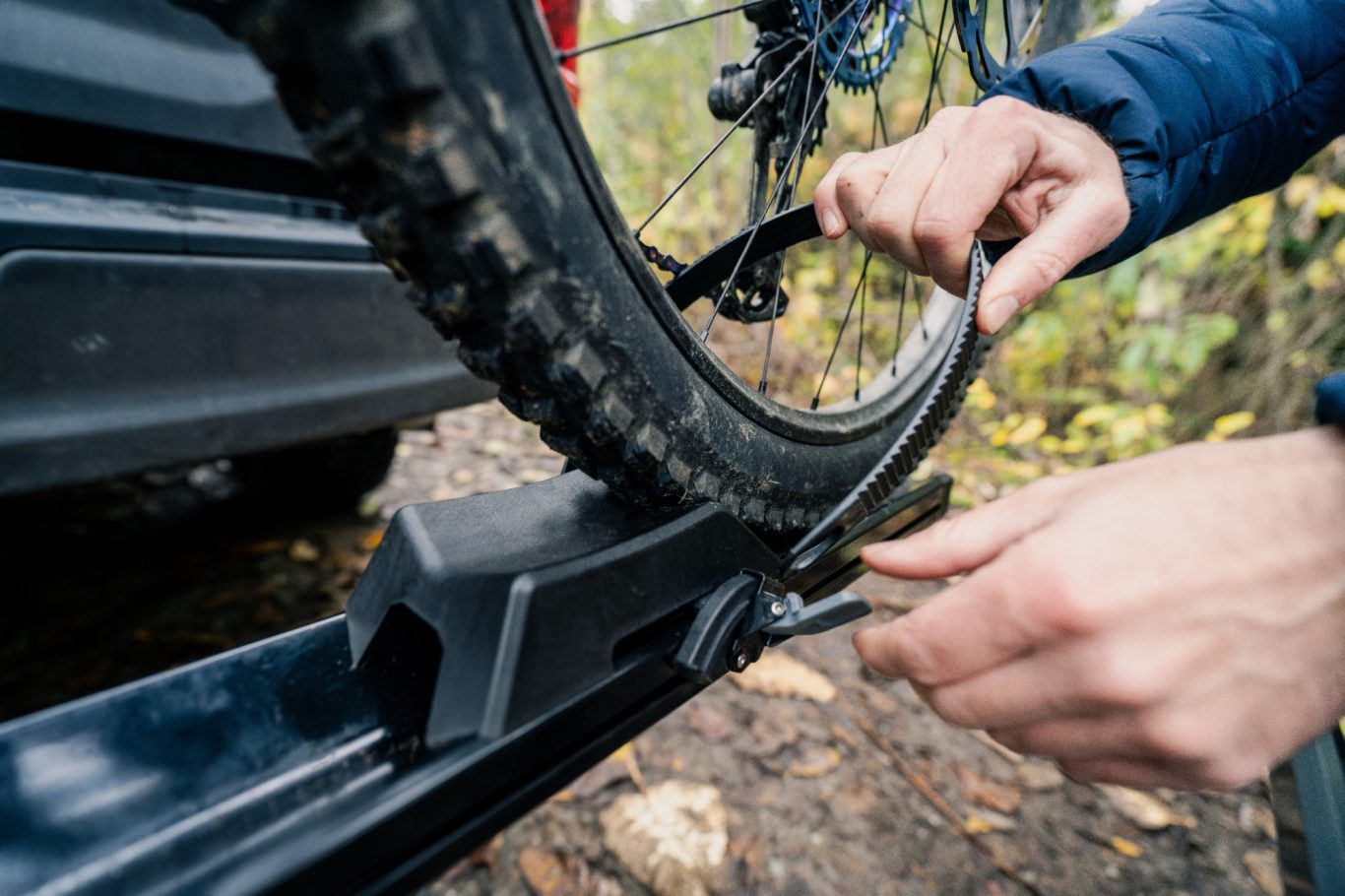 Capable of handling a range of bikes, the MHS 2+1was designed to carry some of the biggest bikes around. We're talking 100 lb. eBikes, big hit whips with 53" wheelbases, and bikes with wheels ranging from 20 to 29 inches. No matter your style of ride, dual-arm wheel holders securely move bikes down the road without touching the frame, while integrated locks protect the bikes and rack. Plus, tool-free wheel adjustments make it easy to swap out rigs or lock in a friends on the way to the trail.