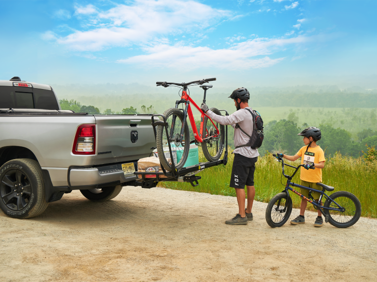 - Tilting - Rack tilts away from vehicle with bikes installed for access to your hatch, tailgate or trunk.